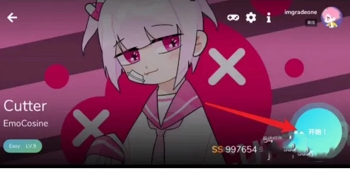 打开Cytoid应用,进入游戏主界面后,点击右下角的【开始】按钮。