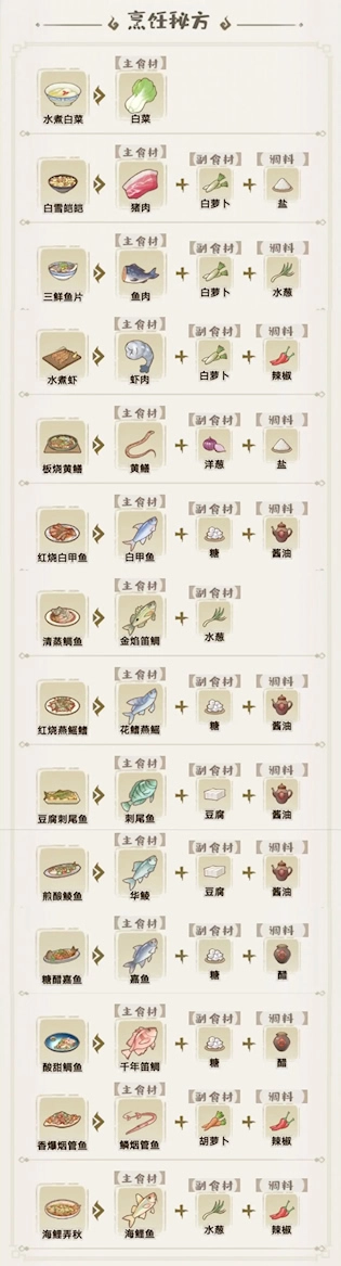 ③鲬鱼汤=鲬鱼+黄瓜+盐(或鲬鱼+2盐)