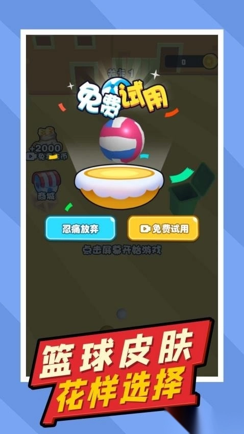 进入游戏即可免费领取金币与篮球皮肤,观看广告还能直接试用小球。