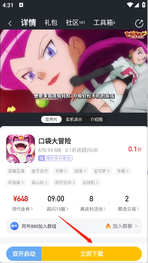 点开想玩的游戏进入到详情页,点击立即。