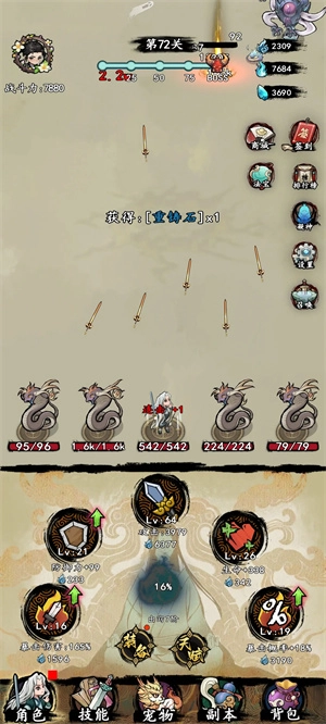 主角的核心养成围绕装备与天赋展开,这也是玩家日常操作最频繁的界面。装备采用替换式升级机制,多余的装备可进行分解处理;天赋则能通过消耗挂机获取的资源,直接提升角色属性。