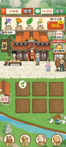 游戏里能拿到红包的途径可不少,像完成订单、试玩游戏、收集典故、制茶之类的都可以,操作起来也特别轻松。