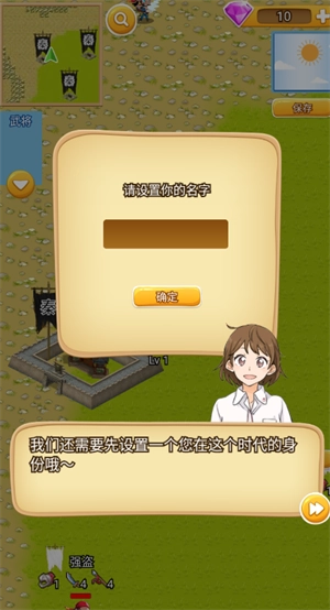 乘坐时光机穿梭回秦朝末年,开启你的征战之旅吧——先设定专属名字,再挑选心仪形象。