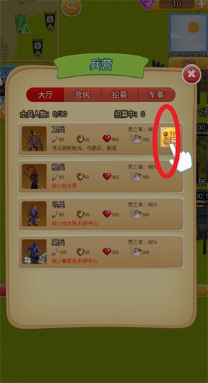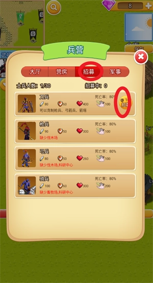 进入兵营,招募不同的士兵,开始新的征伐战斗