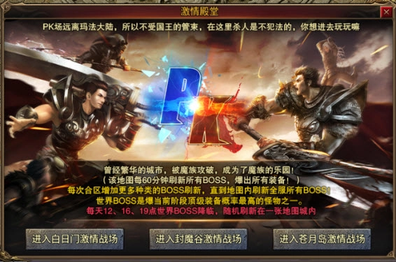 每次合区都会增加更多种类的BOSS刷新,直至地图内刷新出全服所有BOSS。