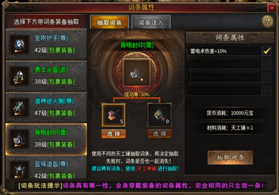 特殊装备均配备专属词条,词条搭配玩法是游戏的核心玩法之一。