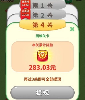这个平台是可以提现的,新人用户只要顺利通过第一关,就能申请提现0.1元;完成第二关后,可以提现0.2元;不过到了第三关,难度会相对大一些。