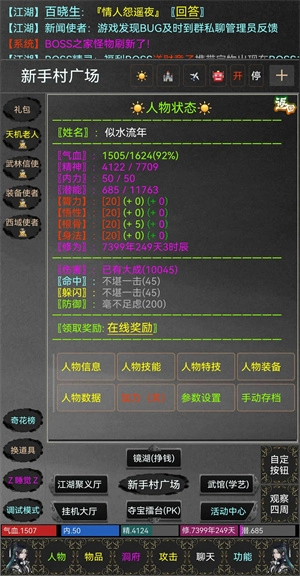 在江湖孤影的世界里,玩家将借助文字描绘开启角色的成长之旅与冒险征程,这种经典的游戏模式能让玩家尽情挥洒想象力。游戏融入了放置玩法,玩家既能通过修炼增强角色实力,也能依托放置系统在离线状态下持续获取经验与资源。这样的设计让游戏体验更为惬意,适配不同生活节奏的玩家群体。