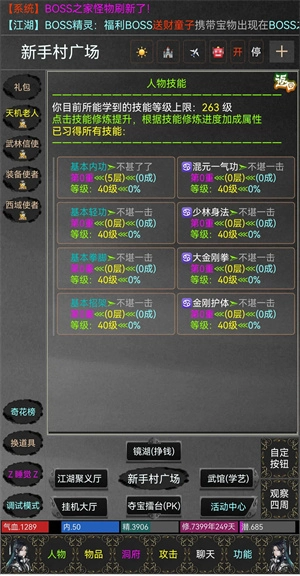 新手技能获取途径如下:在新手村的冥思房搜索可得到30级技能书,而60级技能书则需通过击败特定NPC来获取。
