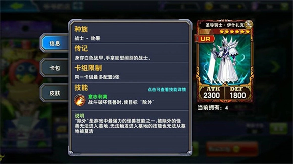 城之内的怪兽初始攻击数值普遍偏高,在4星怪兽里有两张1800攻和两张1700攻的卡;而他的6星怪兽扎克不仅有2300的高攻击力,技能效果也相当强力,在三个可选角色中表现尤为突出,因此前期能轻松占据较大优势。更关键的是,他的卡组运作起来很少会出现卡手的情况。另外,城之内的卡组中还包含黑龙卡牌,一旦集齐组成完整的黑龙卡组,后期在提升段位方面也有着极强的实力。