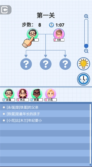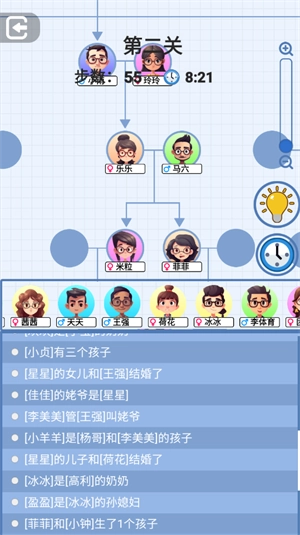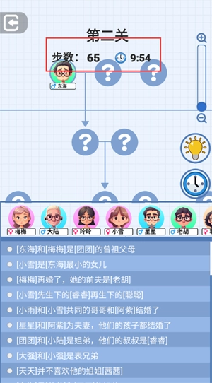 每一关会给出线索,玩家需要根据线索推理出人物关系