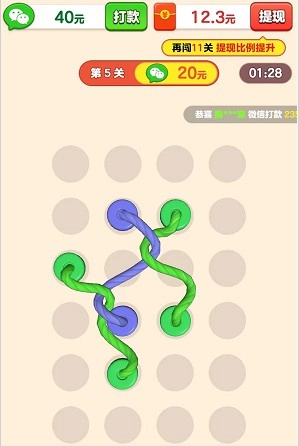 解开的绳索越多,能拿到的奖励就越丰厚,只要满0.3就能直接提现。