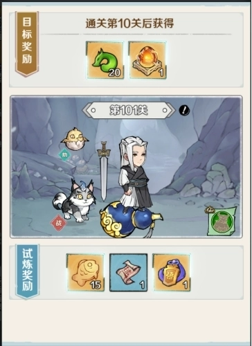试炼关卡(PVE模式)。成功通关后,能得到小鱼干、仙玉之类的道具。不同章节对应的奖励各不相同哦!