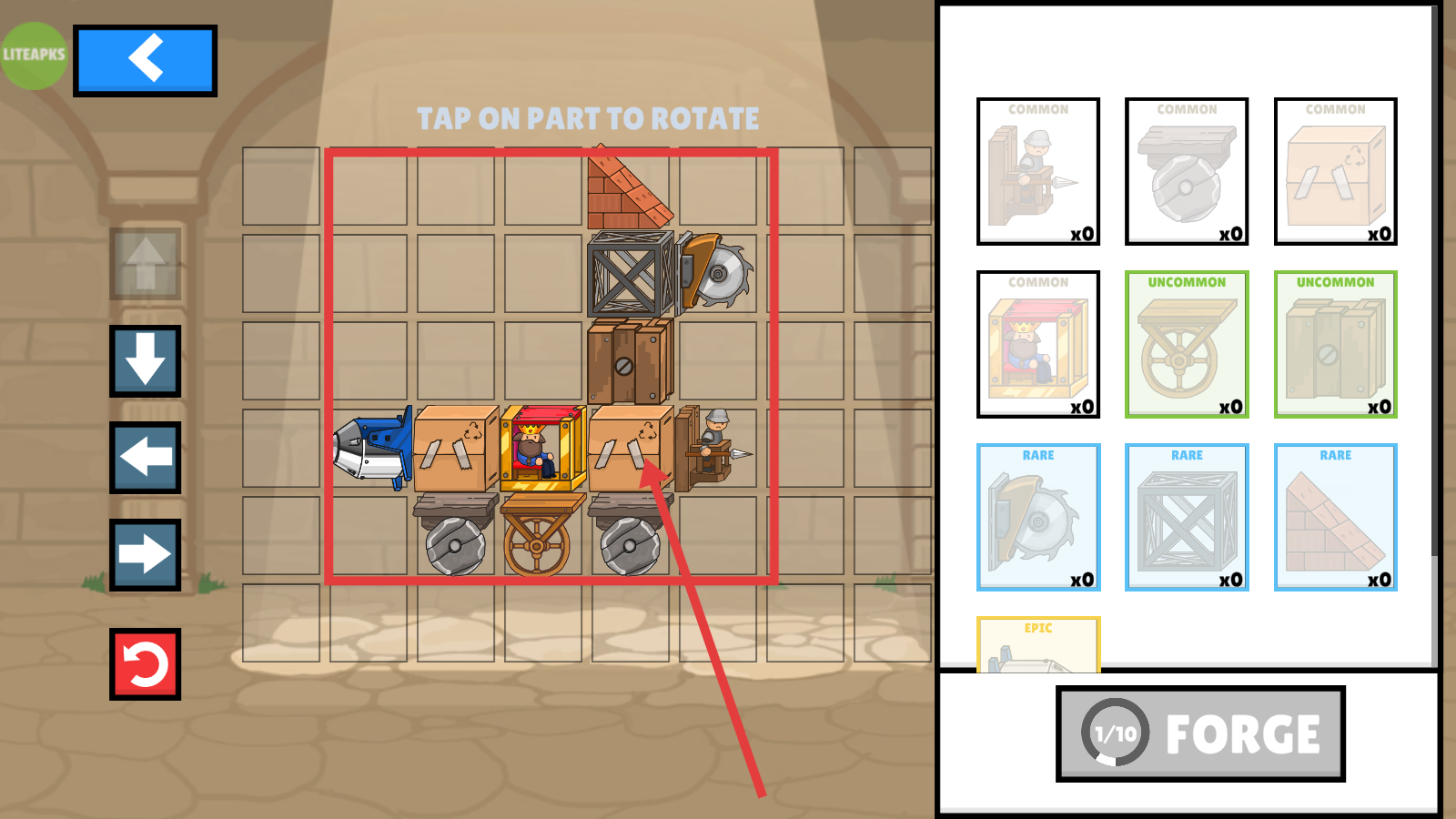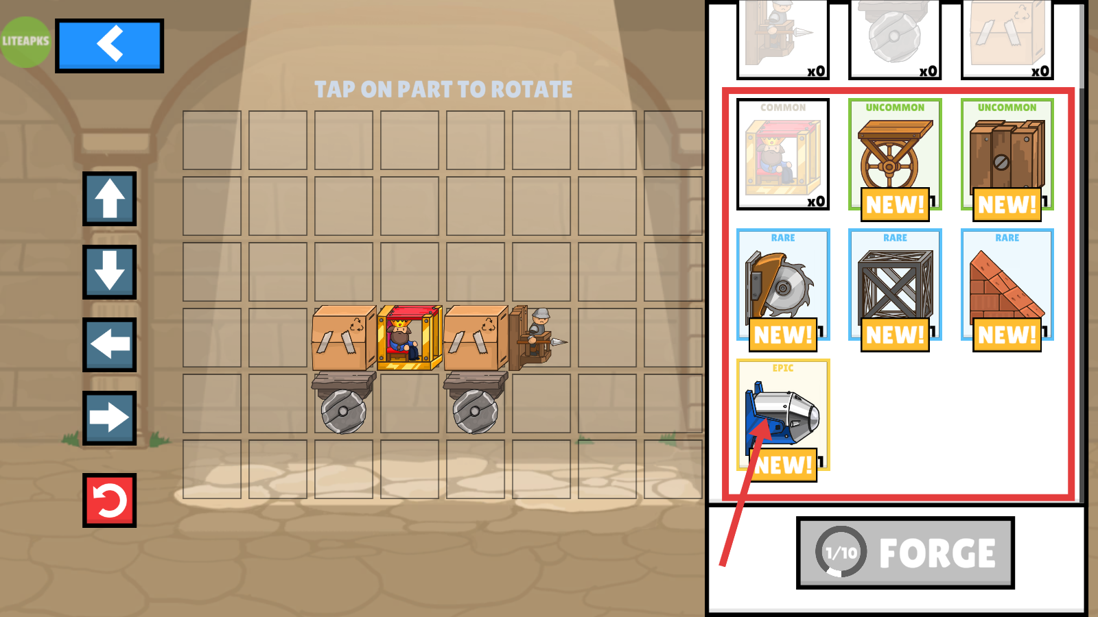 1、进入战车编辑界面后,可将右侧【COMMON】【UNCOMMON】【RARE】【EPIC】等级别的新部件拖拽至网格区域,以此完成战车装备的升级操作,进一步强化战车的战斗能力。