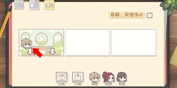 4、接下来要选择对应的人物,拖动人物时,上方场景会出现箭头提示其位置,玩家需将人物拖动到正确的位置、场景,甚至按正确的顺序操作才能通关。