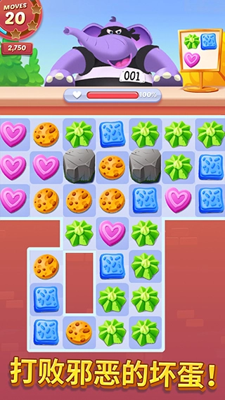 3、核心玩法为把三个及以上相同样式的饼干连成一条直线就能消除,适合所有年龄段的玩家。