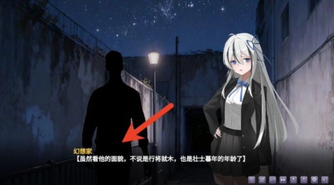 1、进入游戏后,借助简短的开场动画与文字说明,了解孤独的“幻想家”在大平市偶遇少女山奈晞的背景故事,从而正式开启这段独特的四夜邂逅之旅。