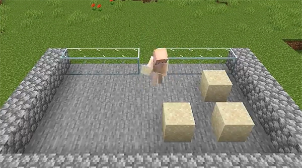 3、出口使用玻璃制作,在围墙中放置8个沙子。