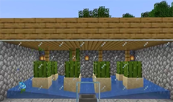 7、最后在出口处放置漏斗、堆肥桶与箱子,至此农场便建造完毕,能够自动产出骨粉了。