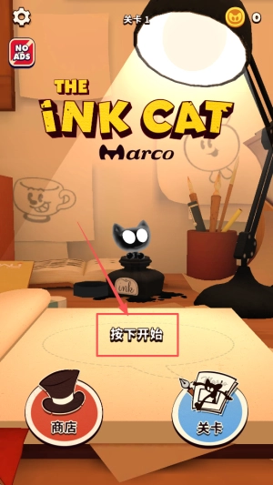1、开启绘画准备:进入游戏后熟悉猫咪操控方式,明确 “按要求作画” 目标,了解各色墨水的使用方法与绘画规则。