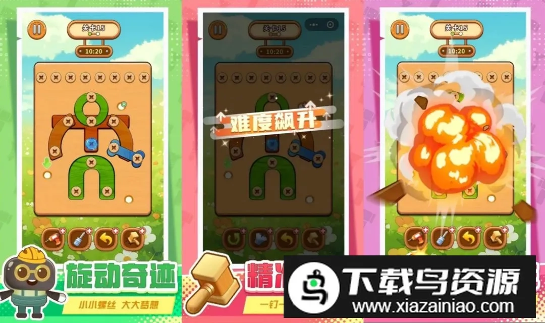 《螺丝拧一拧益智锤子天天除》这款游戏堪称休闲解谜领域的佳作。玩家将手持虚拟的扳手与锤子,对木板上的螺丝进行拆除操作,在此过程中需要仔细观察结构,并合理规划拆除顺序。游戏配备了动感十足的背景音乐(BGM),设有全球排行榜,画面制作精良,同时还提供离线模式以及DIY关卡等丰富内容,期待你来挑战。