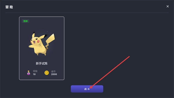 1、【冒险】界面下的【新手试炼】难度设定为【简单】,完成挑战后可获得【经验-10】与【金币-2000】的奖励,点击【战斗】按钮就能开启这场试炼挑战。