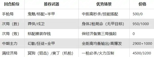 标配手枪(0):预留资金用于购买技能,搭配半甲能获得较高的性价比。