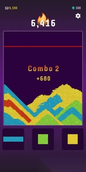 1、创新玩法体验:把俄罗斯方块和流沙物理效果相融合,玩家通过匹配彩色沙粒触发连锁消除,可在真实重力作用下体验沙粒流动的动态变化,收获全新的游戏感受。