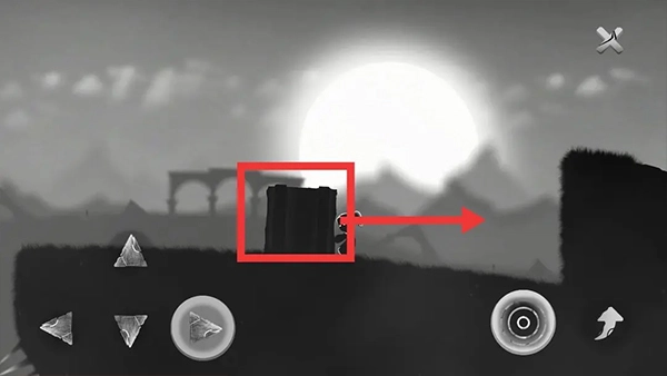 ①把石块推到右边的小坡处,踩着石块翻过这个小坡。要留意躲避恶魔。