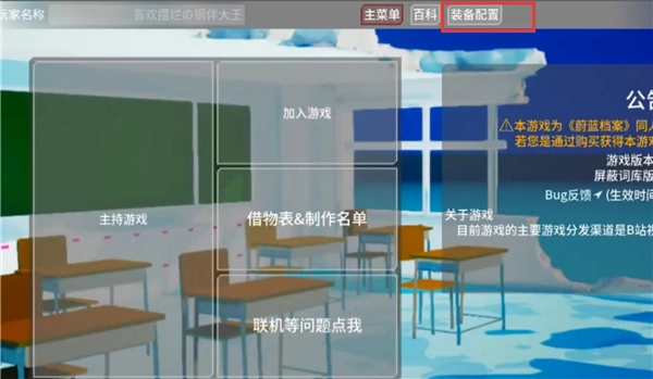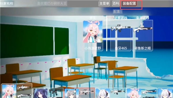1、进入蔚蓝竞技场游戏中,点击上方【装备配置】。