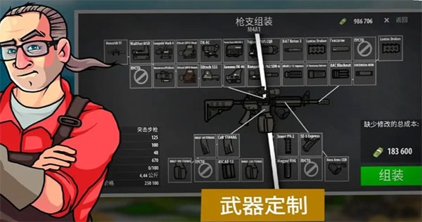 4、定制瞄准具、弹匣、枪口装置、武器战术手柄。