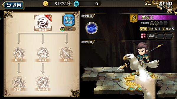 当英雄熟练掌握前置职业后即可进行转职,兰斯目前的职业为鹰骑士,最终能够转职为皇家骑士、龙骑统帅或骑士。一旦精通某一职业,便能永久获得该职业对应的属性加成。