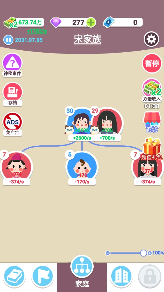2、可供选择的职业丰富多样,你可以为家族中的每一位成员安排合适的工作,从而提升家族收益。