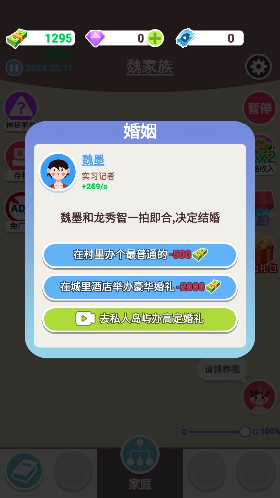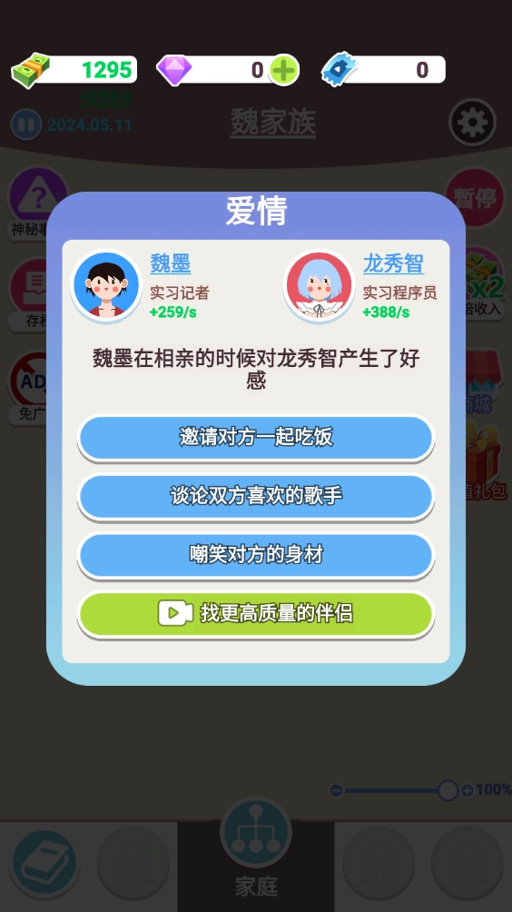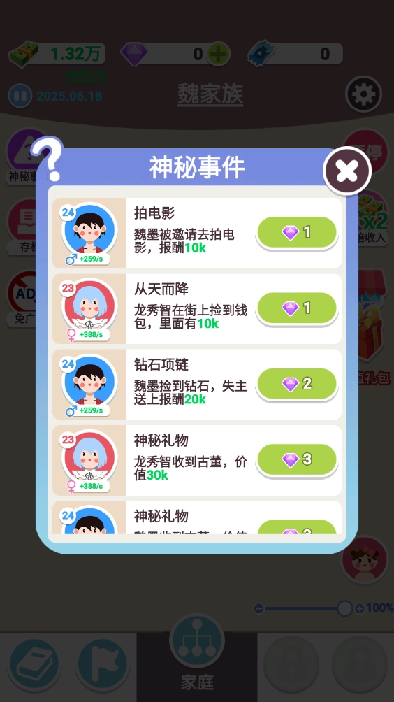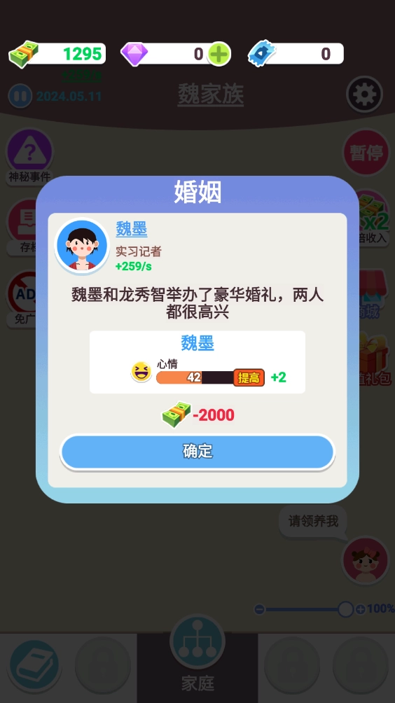1、这里会模拟人生里的各类重要事件,像恋爱、结婚、养育下一代之类的,只有持续发展才能让家族繁荣昌盛!