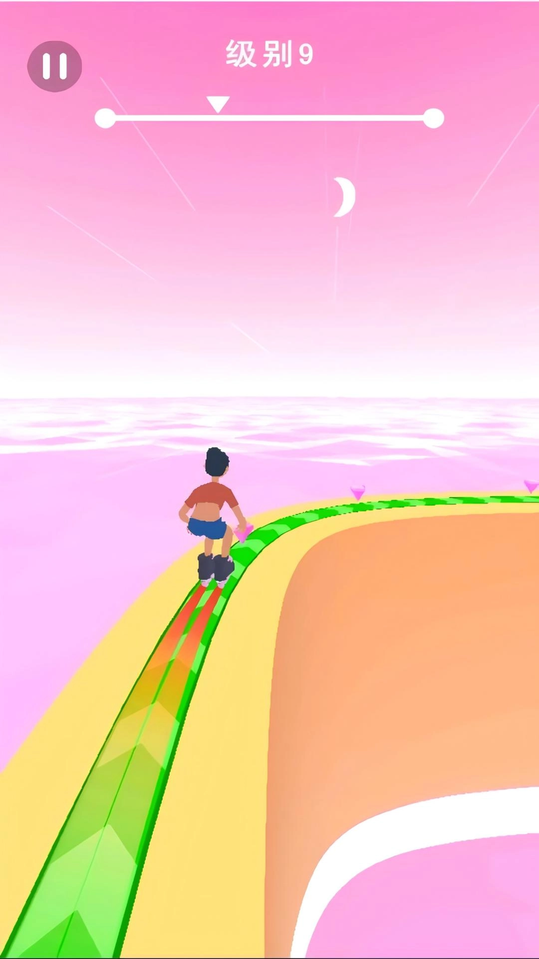 操控脚踩轮滑的角色,在各类障碍物间穿梭,目标是顺利抵达终点。