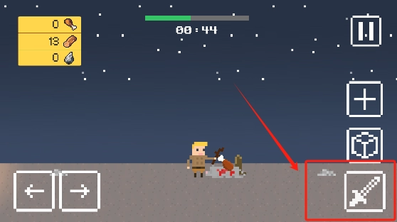 5、遇到野兽时,点击攻击键击杀野兽就能获得肉的数量增加