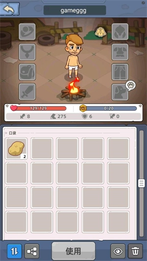 4、点击右下角的按钮可打开背包,查看已收集的物资与装备,点击相应物品即可进行使用。