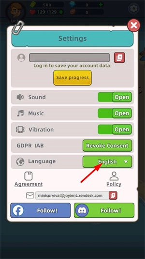 2、接着在设置界面中点击language选项,将语言切换为English。