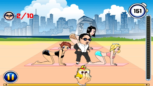 6、当鸟叔摆出猥琐动作时,用手指触碰屏幕发射小鸡,目标是在限定时间内战胜鸟叔,要注意的是,若打中姑娘会被扣除时间。