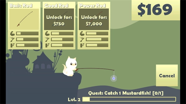 游戏中的鱼竿设有不同等级,等级越高,钓上鱼的概率就越大。