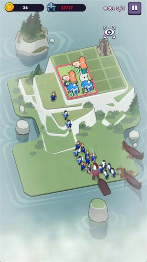 4、敌人会乘船从各个方向袭来,进攻你的小岛,小兵碰到敌人就会主动发起攻击。