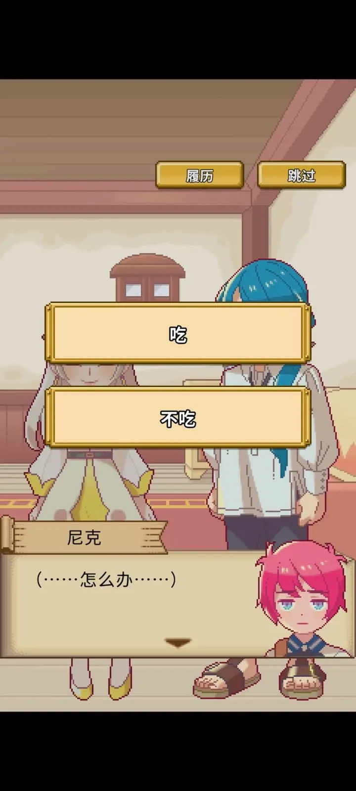 2、选择不吃的话,英俊就会凑过来一起吃。