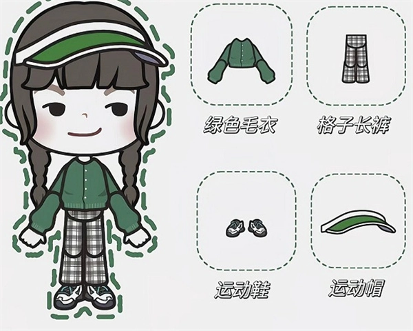 4、最后就是运动鞋+运动帽+绿色毛衣+格子长裤。