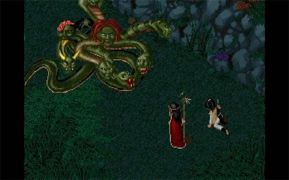 16、树洞迷宫中,DOS版里引路蜂宝箱所在的桥是断裂的,且为木质结构;而98版的桥能够通行,但相比DOS版,这座桥的外观要逊色不少,出口处有两条路径可以抵达。
