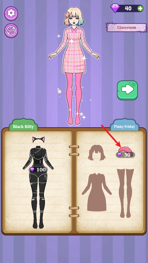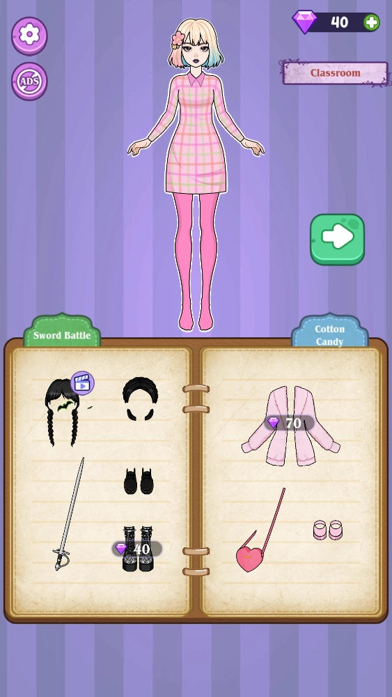 魔法日记纸上装扮,英文全称是Magical Diary:Paper Dress Up,这是一款画风精致细腻的角色换装游戏。在游戏里,主人公会走进各种各样的场景,像学校、商场、公园之类的,我们要做的就是为他设计出适合的服装造型,让他能在这些场景里开启一个个有趣的故事,再把这些美好的瞬间都记录下来!我们还能通过完成挑战获得更多钻石,用这些钻石去买更多漂亮的服装,让你的角色变得更亮眼!
