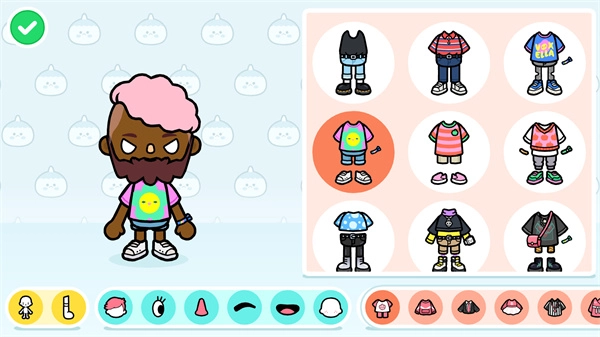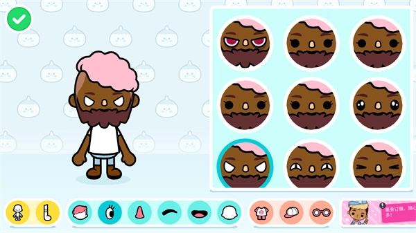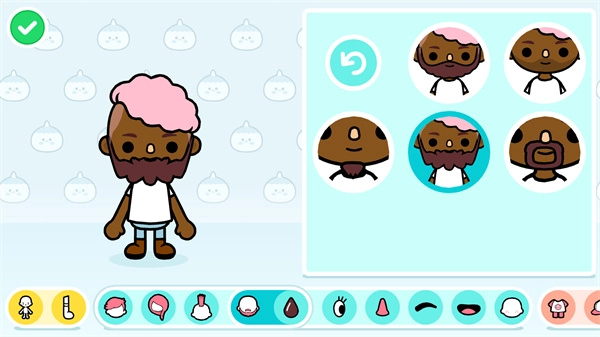 2、游戏里有不少卡通角色,你可以点击上方的图标来切换它们,之后还能挑选合适的发型、调整发型颜色,甚至可以搭配胡子呢。