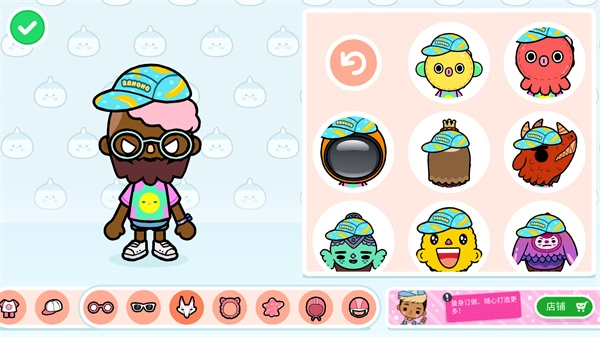 5、接着挑选帽子、眼镜之类的道具,就能完成创建,最后点击左上角的图标保存好就可以了。