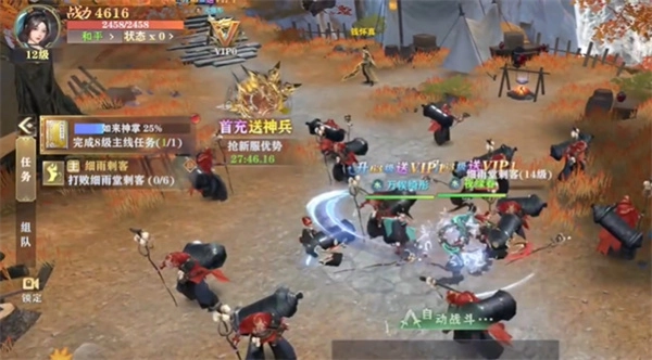 玩家选定职业后即可踏入江湖,随时开启热血PK,战斗支持自动进行。