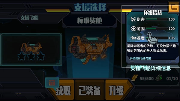 8、在支援库里能够查看所有飞船的相关信息,我们也可以在这里获取飞船以及进行升级操作。