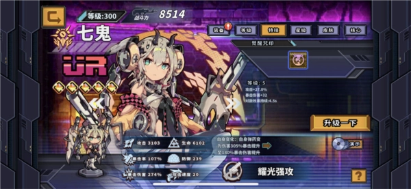 -七鬼作为最强光耀角色,是当前版本的顶尖输出,不过在推图表现和普攻弹道方面略有不足